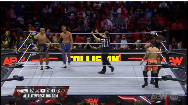 AEW COLLISION 29 DE JUNIO 2024 .— Este sábado se celebró un nuevo episodio de AEW Collision, y seguimos avanzando rumbo a Forbidden Door. El estelar fue un combate de tríos entre El Phantasmo, Jack Perry y Konosuke Takeshita contra Dante Martin, Lio Rush y Mark Briscoe, con victoria de los primeros.