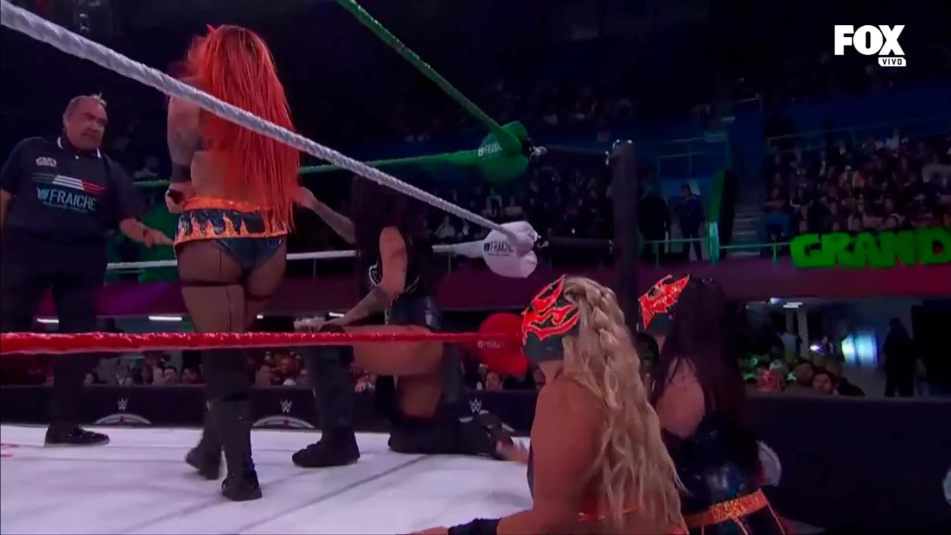 ► Después de la lucha, los villanos siguieron atacando a El Grande Americano, pero Rey Mysterio llegó al rescate.