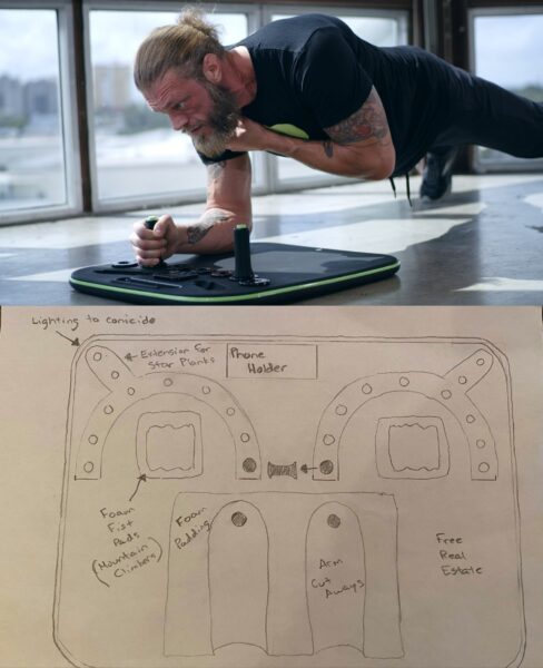 CC: “Creo que es genial tener variedad. Yo no hacía mucho trabajo de core antes de la pandemia. Cuando comencé a hacer planks, ni siquiera podía aguantar un plank por 30 segundos y fue vergonzoso. Se supone que soy un atleta de alto nivel y no podía sostener un plank ni por un minuto. Tuve la idea de Pure Plank después de construir un pequeño gimnasio en mi garaje que me diera unas opciones mínimas para ejercitarme. Entonces me obsesioné con el planking y la fuerza del core. Poco después vi cómo mi cuerpo empezaba a transformarse a los 47 años, como nunca lo había visto ni sentido antes. Sentí que tenía que haber una manera de poner a las personas en la posición correcta de inmediato y darles una mejor oportunidad de mantener el ejercicio sin tener que reajustarse; ahí fue donde surgió la idea de los manillares—y así nació Pure Plank.”