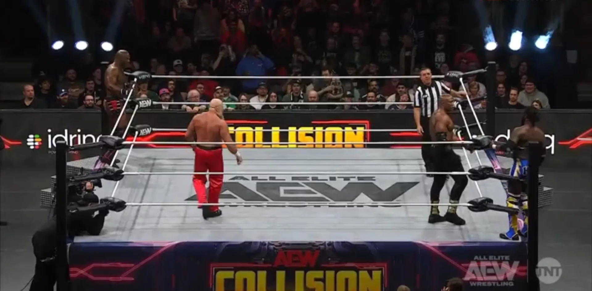 The Hurt Syndicate no luchaba en AEW desde el 22 de noviembre de 2025... todo por una lesión desconocida de Bobby Lashley, de la cual se curó en febrero, y por falta de planes... pero, la semana pasada, hicieron una aparición sorpresa de regreso en AEW, en Collision... MVP, Shelton Benjamin y Bobby Lashley, The Hurt Syndicate is back on business, como dijo AEW en X. Están de regreso a sus negocios y se enfrentaron a dos talentos locales... Anderson y Lashley empezaron, Lashley lo mandó al esquinero y Anderson reaccionó, trató de darle un súplex, pero recibió tremendo codazo... Lashley lo puso en un súplex vertical... Jabari entró al ring y atacó a Lashley por la espalda, dándole varios puñetazos, pero Lashley ni se movió, solo se rio... Lashley le dio el relevo a Benjamin, quien mandó a volar a Jabari... Jabari luego le hizo machetazos a Shelton en dos ocasiones... Anderson atacó a Benjamin, pero Lashley le hizo tremendo chokeslam... Benjamin atacó a Jabari con un rodillazo... Lashley partió en dos a Jabari con una spear... Benjamin atacó a Anderson con una thrust kick y logró la cuenta de tres.