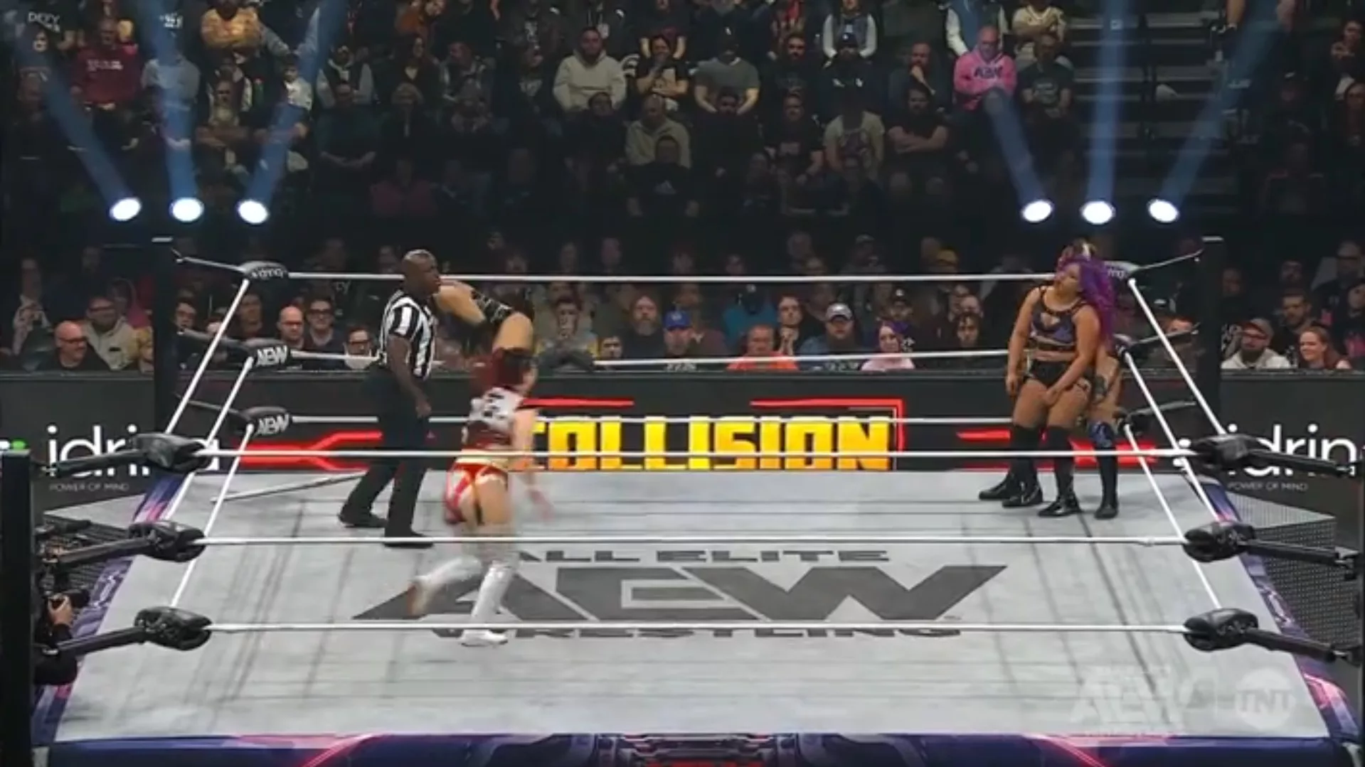 En esta lucha, la Campeona Mundial Femenil STRONG de NJPW, Alex Windsor, quien está enloqueciendo a los fans de forma postivia gracias a su alianza con Jamie Hayter, con quienes son conocidas como The Brawling Birds, buscó el Campeonato Mundial Femenil AEW al enfrentarse a La Araña Tóxica Thekla, la actualmonarca... Thekla se burló de la victoria ante Jamie Hayter en Dynasty el pasado miércoles durante Collision, y eso no le gustó nada a Windsor, quien le dijo que no ganó la lucha de manera justa y que iba a retalar a un combate titular... Thekla aceptó la lucha, y aunque Julia Hart y Skye Blue intentaron atacarla, Windsor logró escaparse por entre los fans... La campana sonó y Thkela evitó una embestida de Alex, a quien mandó fuera del ring... luego le hizo tacleadas de hombro y le dio derechazos... Thekla voló como un pájaro sobre Alex, pero luego esta le dio tremendo lariat al cuello y la dejó tendida en la lona... Thekla atacó la rodilla de Windsor, luego le hizo un lariat y le cayó fuera del ring encima con tremenda plancha cruzada... Thekla luego atacó con machetazos a su rival, quien le respondió de la misma forma. Thekla logró el Sharpshooter sobre Windsor, quien reaccionó con un powerslam contra la lona... Windsor le dio tremendo cabezazo a Thekla, y le hizo el sharpshooter, pero Thekla logró tomar las sogas y luego, la puso en The Octopus, pero Windsor se liberó y logró tocar las sogas también... Más adelante, el final llegó cuando Thekla le dio varios derechazos, cabeazos y más puñetazos a Alex con su manopla, que tenía esconcida y metió luego en la ceja del ring. Windsor cayó tirada a la lona, ya cansada... Thekla luego le dio tremendo pisotón en la cabeza a Windsor y logró ganar por cuenta de tres y retener el título.