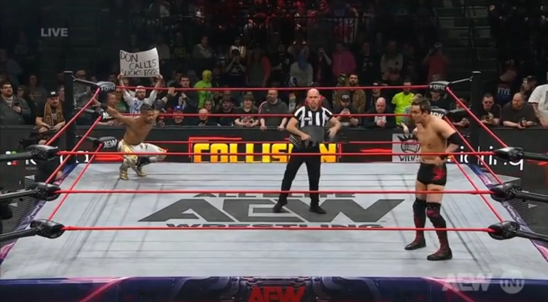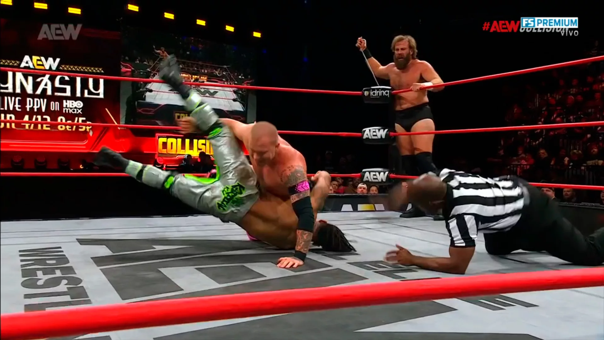 ► Aunque los fans y Kevin Knight reclamaron, y el réferi escuchó el reclamo de los fans en ringside, decidió dar por valida la victoria.
