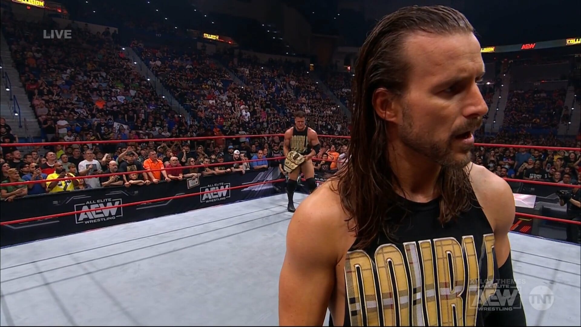 ► Adam Cole abrió sus brazos esperando ser golpeado por MJF, pero este arrojó el título a un lado de ringside, fuera del ring. Cole se iba a ir, pero los fans le pidieron que se abrazaran.