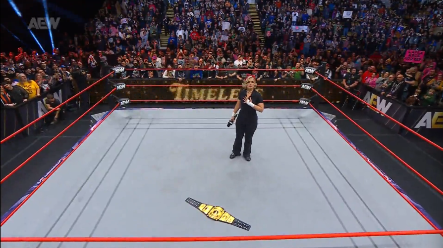 La noche arrancó con «Timeless» Toni Storm, que viene de ser derrotada limpiamente por cuenta de 3 por nadie más y nadie menos que Megan Bayne.