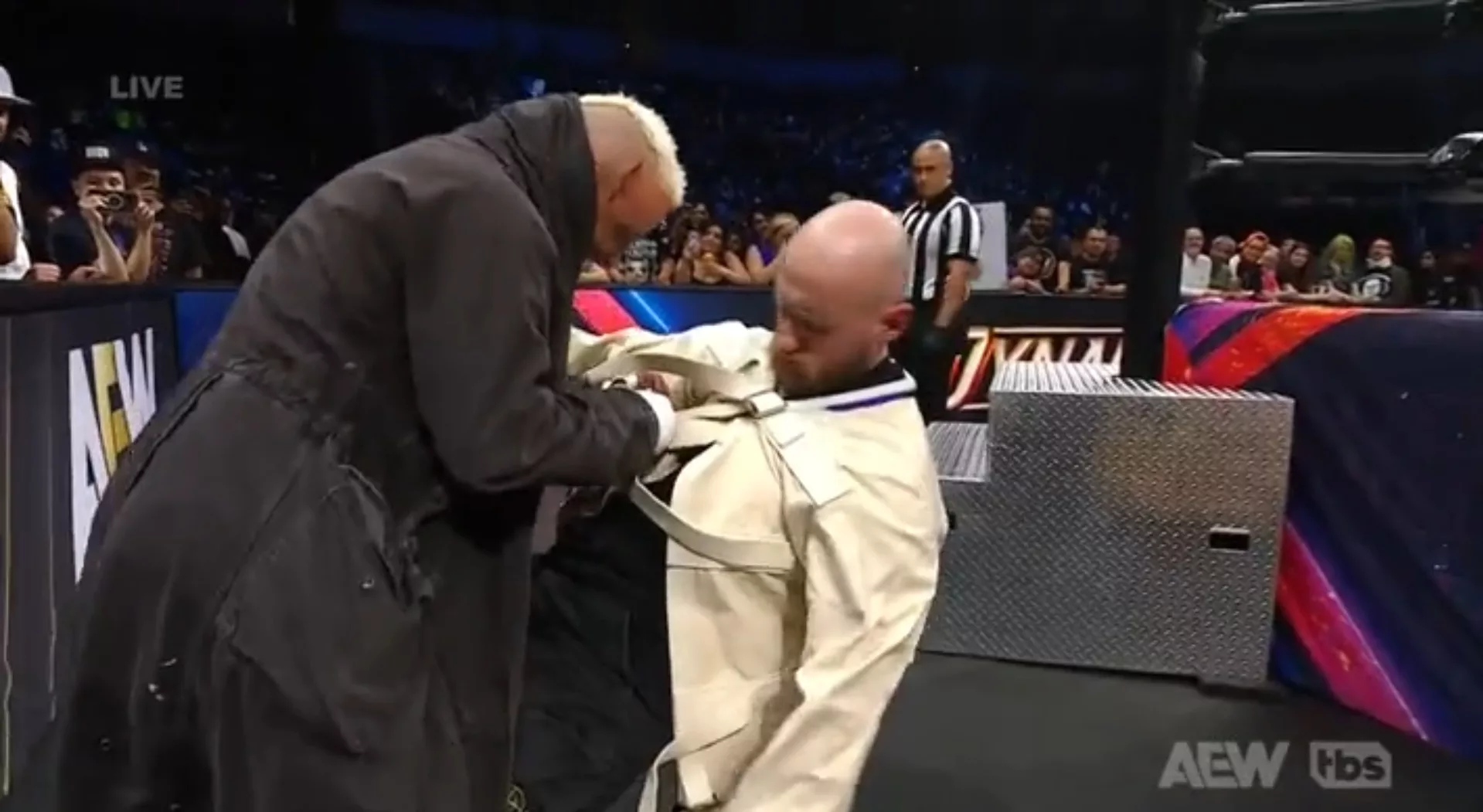 ► Jon Moxley apareció y Will Ospreay se le fue encima, le dio con una caneca de basura. PAC apareció para evitar lo que parecía un Pedigree de Will Ospreay.