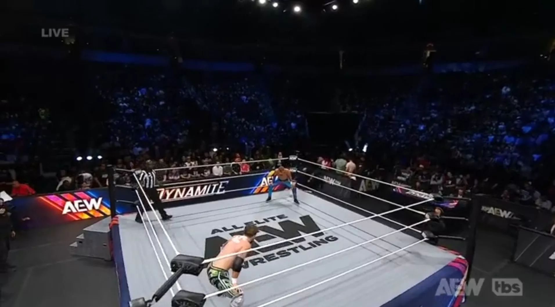 BTE Trigger de The Young Bucks y rodillazo de Jack Perry para obtener la cuenta de tres.
