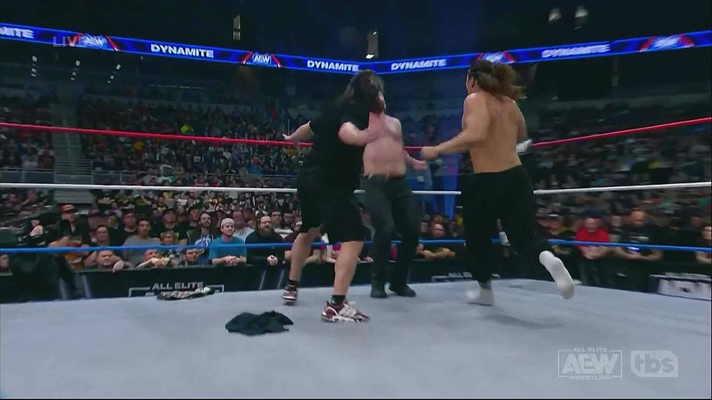 Bryan Danielson apareció en la pantalla gigante y les dijo que eran unos aficionados, mientras que Moxley, Wheeler Yuta y Claudio Castagnoli aparecieron para atacar a The Elite por detrás.