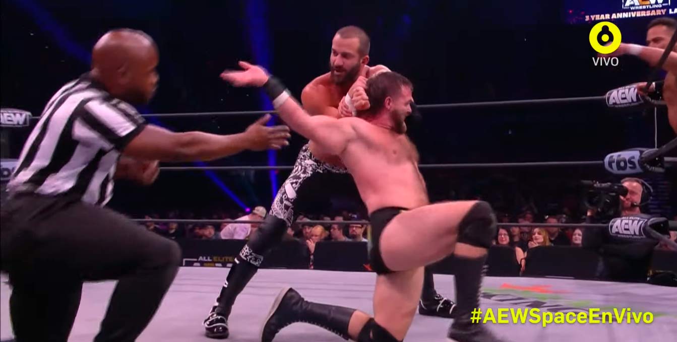 ► Después de un ataque de Jericho y compañía a Moxley y Kingston, Bryan Danielson llega al rescate.
