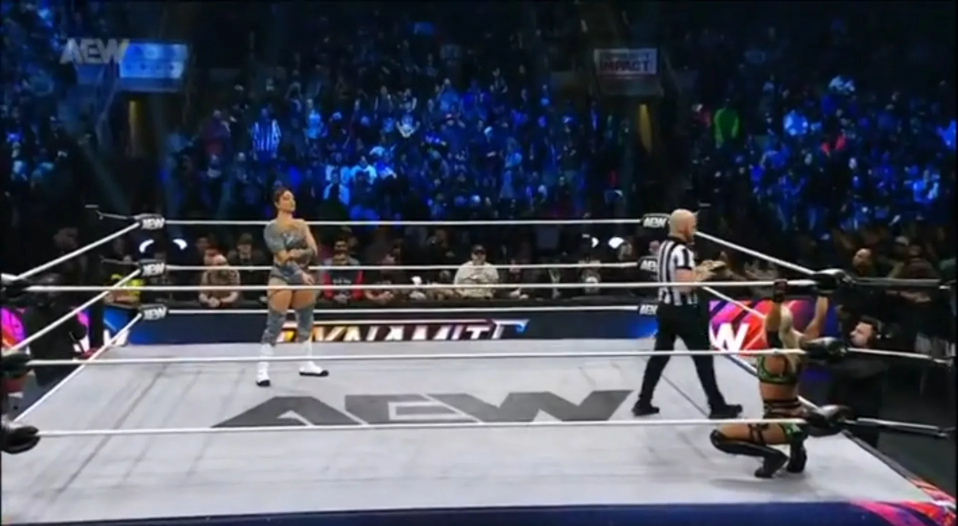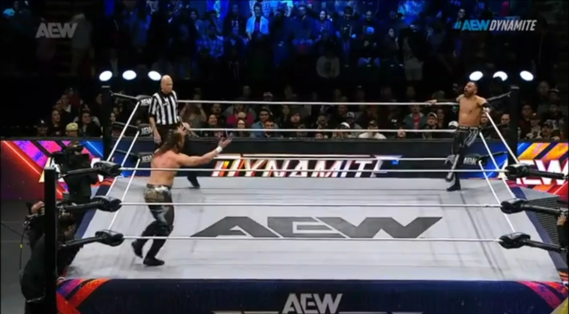Kenny Omega quiere volver a ser Campeón Mundial de Peso Completo AEW. Y para llegar a la cima, para poder obtener una oportunidad titular, tiene un largo camino qué recorrer. Primero, deberá pasar por encima de los miembros de The Don Callis Family, sus antiguos aliados en cierto punto. La semana pasada, Omega venció a Josh Alexander y esta noche se enfrentó a Romero. Sin embargo, algo curioso fue que el réferi empezó la lucha cuando Omega estaba haciendo su seña de pistola en la entrada, inusual, lo que le permitió al azúcar tomar ventaja y golpearlo a traición. Kenny Omega comenzó la lucha dominante, dándole una tunda a Romero incluso afuera del ring. De regreso, una guillotina seguida de una patada al estómago. Rocly Romero escapó del ring antes del V-Trigger, y luego empujó al réferi. Ese fue su momento, pues pudo conectarle una serie de codazos y una rompecuellos. Después, un par de lariats en el esquinero. Cuando iba por el cuarto, Omega lo paró con la bota en la cara. Romero falló Sliced Bread, pero conectó spin kick… Cuando celebraba, Omega le impactó V-Trigger, el cual enlazó con Snap Dragon, otro V-Trigger y remató con el One Winged Angel.