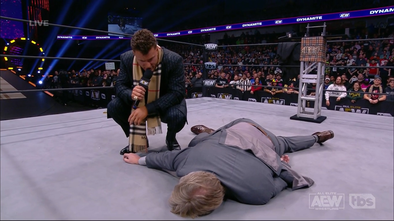 ► «¡Voy a ser campeón mundial AEW por mucho tiempo! Bueno, de hecho… hasta julio de 2024, para conseguir el contrato que más dinero ha hecho en la historia de la lucha libre profesional… Se viene la guerra entre Tony Khan, y del otro lado, mi amigo, Trips [Triple H]», sentencia MJF.