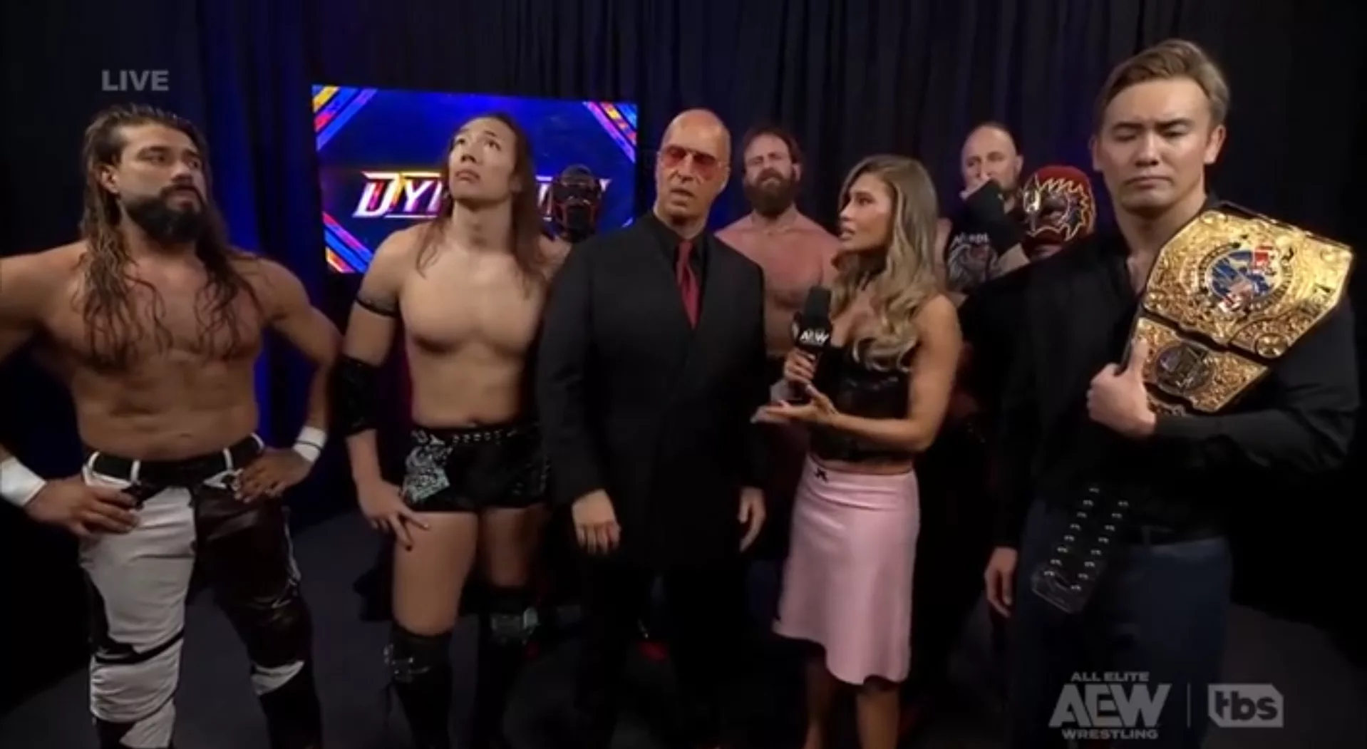 ► De manera sorpresiva, Don Callis dijo que The Young Bucks lucharán en Dynasty ante Kazuchika Okada y Kazuchika Okada… aunque se negaron, Takeshita aceptó si tenía una oportunidad por el Campeonato Internacional AEW ante Okada y Don Callis aceptó.