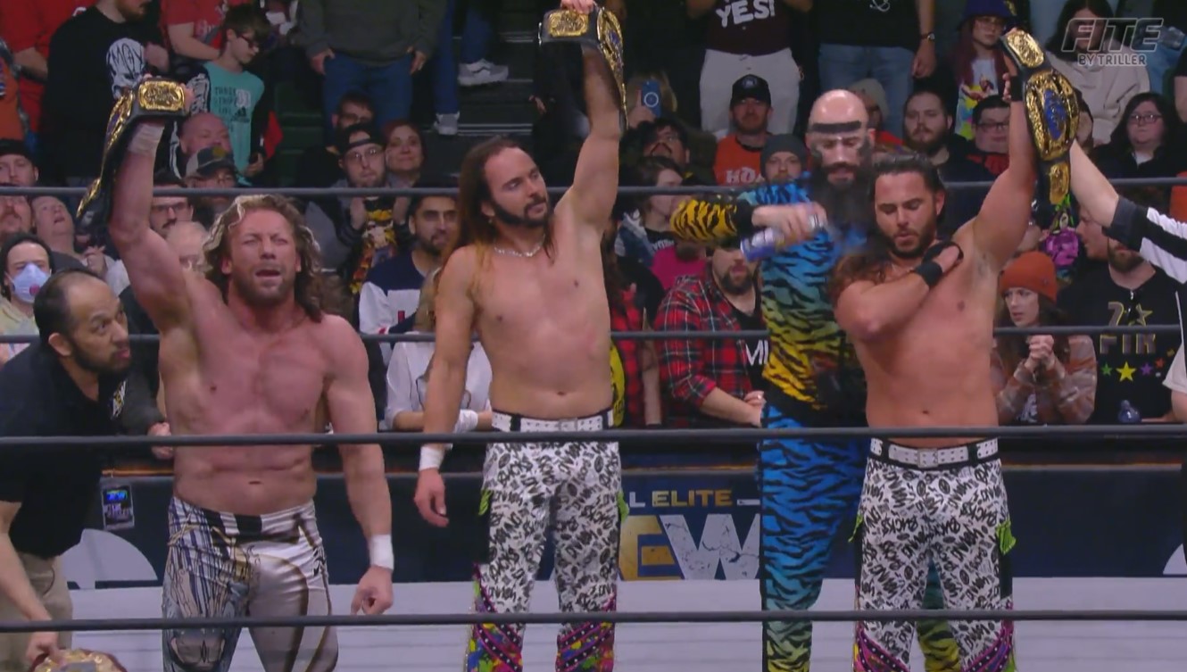 AEW RAMPAGE 3 DE FEBRERO 2023 .— Después de haber salido vencedores en la serie de 7 luchas ante el Triángulo de la Muerte, llegó la hora para que Kenny Omega y los Young Bucks tengan su primera defensa al Campeonato Mundial de Tríos AEW. Será ante la tercia de «All Ego» Ethan Page, Matt Hardy e Isiah Kassidy, con Stokely Hathaway en su esquina. ¿Tendrán oportunidad los villanos? La acción de AEW Rampage se emite desde el Nutter Center, en la Wright State University, de Dayton, Ohio.