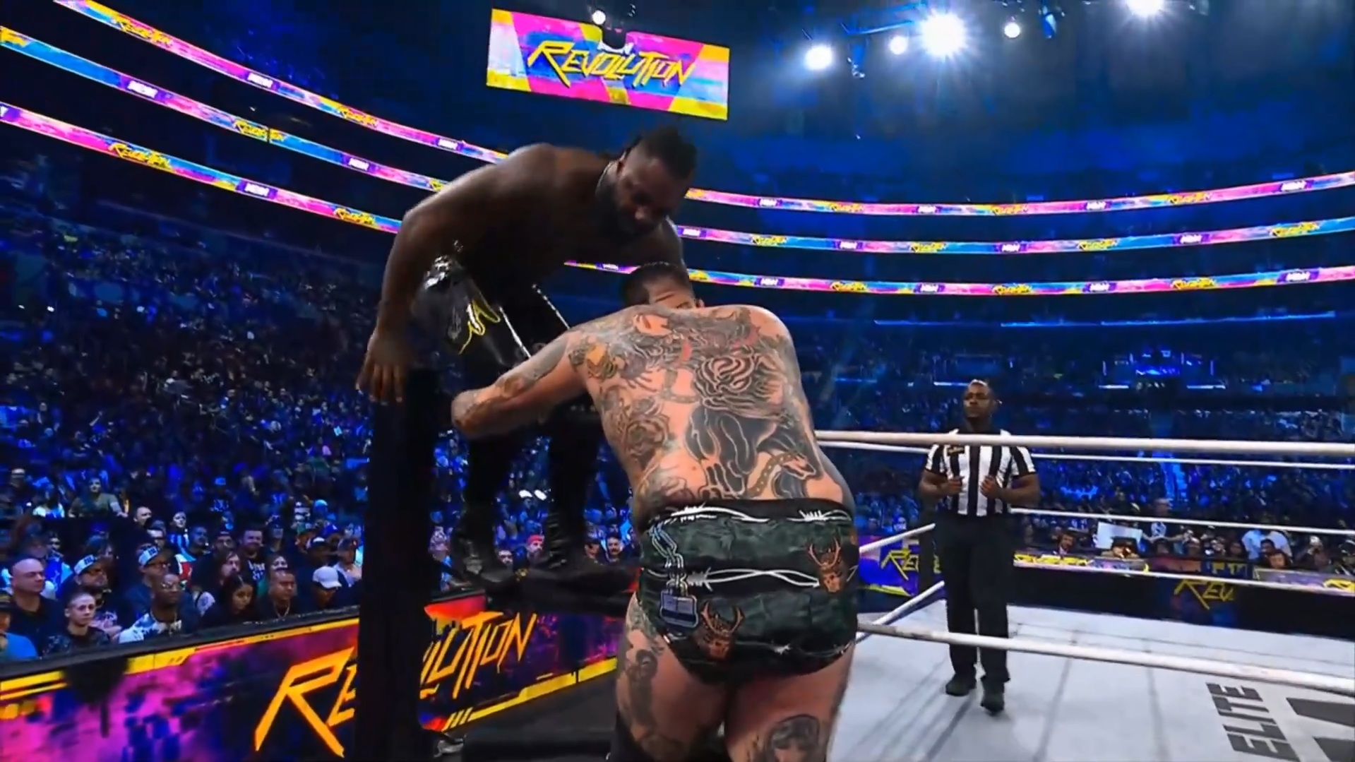 Los Death Riders fueron sobre Ospreay, pero este evitó la ofensiva de alguna manera y les aplicó un Moonsault; sin embargo, cuando quiso volver a atacar a Moxley, este huyó.