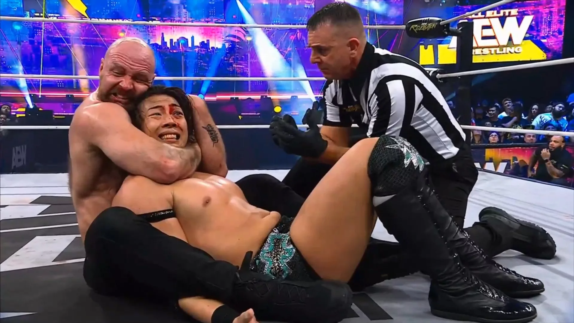 Mox luego castigó con un Súper Death Rider desde lo alto del esquinero a Takeshita, pero el japonés demostró gran garra y corazón y evitó la derrota.