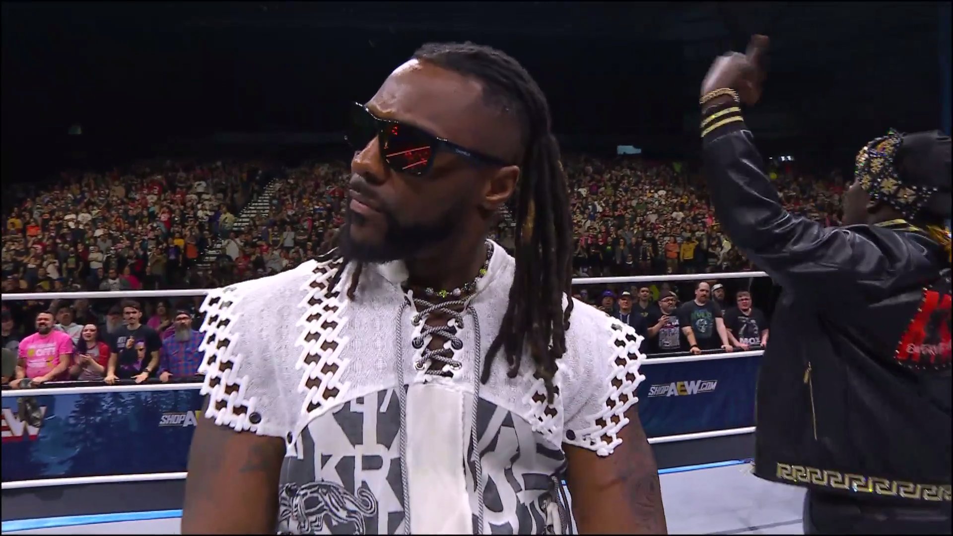 Swerve Strickland llegó al ring y fue ovacionado por su público. El ex campeón dijo que extrañaba tener el título en su cintura, pero se sintió mejor después del recibimiento que tuvo.