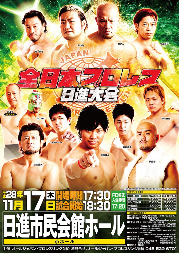 AJPW se presentó en el Nisshin Civic Small Hall donde se efectuó la última jornada del torneo «Jr. Tag Battle of Glory 2016«, con los últimos encuentros de la primera fase y la gran final.