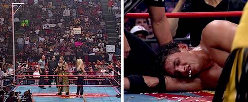y Mankind hicieron disfrutar a millones de aficionados durante el medio tiempo del Super Bowl en 1999. Si a esto le añades que la lucha era por el Campeonato Mundial de Peso Completo WWE, podemos entender que nadie se lo perdiera.►Combate a ciegas