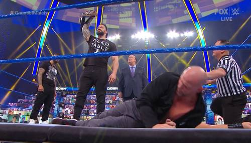 SMACKDOWN 8 DE ENERO 2021 .— Este viernes se celebró un nuevo episodio de la marca azul, donde se disputaron dos encuentros titulares y se dio un cambio titular luego de que Dolph Ziggler y Robert Roode derrotaran a The Street Profits. En el estelar, Adam Pearce fue el ganador del Gauntlet Match y retará a Roman Reigns por el Campeonato Universal en Royal Rumble 2021.