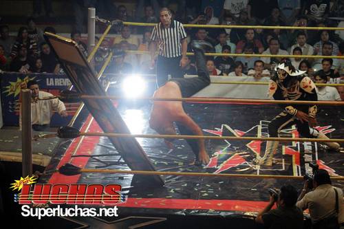 (Los Porros atacaron al final a Damián y a Halloween. Damián fue lesionado y tuvo que salir en camilla). - 4- Mike “Suicida” Segura venció a Mr. Águila y Súper Mega.