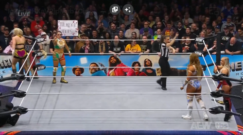 AEW DYNAMITE 26 DE MARZO 2025.— Este miércoles se celebró un nuevo episodio de AEW Dynamite, y vamos camino hacia AEW Dynasty. En el segmento estelar, Megan Bayne y Penelope Ford derrotaron a Toni Storm y Thunder Rosa en una lucha por equipos.
