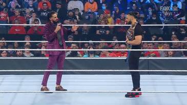 WWE SMACKDOWN 28 DE ENERO 2022 .— Este viernes se celebró un nuevo episodio de la marca azul, el último previo a Royal Rumble 2022 continúa. En el segmento estelar, tuvimos un careo entre Seth Rollins y Roman Reigns, previo al combate que ambos sostendrán por el Campeonato Universal WWE.