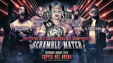 - CAMPEONATO BRITÁNICO INDISCUTIBLE DE PESO CRUCERO REVPRO, 6-WAY SCRAMBLE: Neón (c) vs.Will Kaven vs. Cameron Khai vs. El Phantasmo vs. Leon Slater vs. ?Anuncio