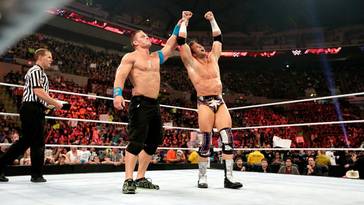 Esto ocurrió luego de salvar a Eve de ser secuestrada por Kane. Cena se besó con Eve, pese a saber que su mejor amigo en ese entonces, Zack Ryder, estaba locamente enamorado de Torres. Este es el video del momento, ocurrido en el Raw del 14 de febrero de 2012, en pleno San Valentín: