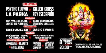 En la lucha estelar, el emblemático enmascarado La Parka unirá fuerzas con Psycho Clown para enfrentar a los peligrosos Killer Kross y Rey Escorpión, quienes no desaprovecharán la oportunidad de hacer de las suyas.