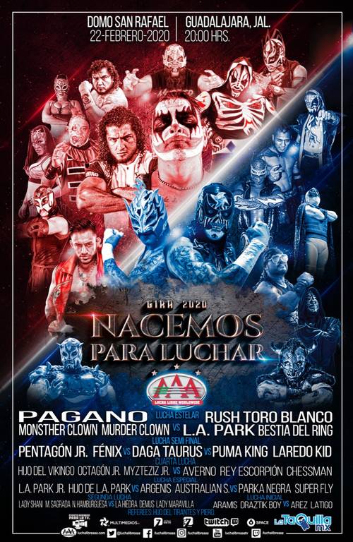 Tras varios años de ausencia, AAA Worldwide Lucha Libre regresa a Guadalajara con una función grabada para la televisión, como parte de su gira «Nacemos para Luchar«.