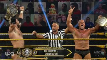 En el evento estelar de NXT de anoche, un misterioso enmascarado apareció en la mitad del encuentro entre Breezango contra Oney Lorcan y Danny Burch por el Campeonato de Parejas NXT y atacó a Fandango enviándolo afuera del ring. Esta situación provocó la distracción de su compañero Tyler Breeze y generó la apertura que requerían Lorcan y Burch para atacarlo con un golpe bajo y combinarse para lograr la cuenta de tres sobre Breeze y el consecuente cambio de título, coronándose como los nuevos monarcas.