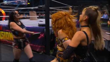Con Saraya poniendo las reglas no se esperaba nada bueno para Jamie Hayter, pues no solo todos los objetos normalmente prohibidos estaban permitidos, sino que Harley Cameron podía intervenir a voluntad... Hubo sillas y mesas en esta lucha, y eso terminó siendo malo para Cameron, pues cuando Saraya derribó a Hayter sobre unas mesas, Harley cayó también sobre ellas, golpeándose de fea manera la espalda, pues una no se rompió... Saraya no pudo aprovechar las ventajas, y después de recibir un martinete, fue terminada por el remate de Hayter.