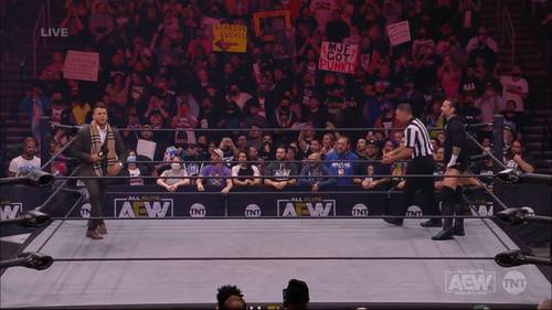 ► La noche empieza con CM Punk haciendo su entrada al ring, pero siendo interrumpido por MJF. MJF le reclama por dejarlo con la mano extendida la semana pasada.