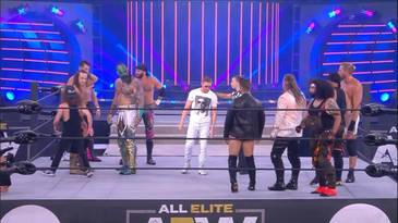 Mr. Brodie Lee toma micrófono y le agradece a Omega por haber vuelto a AEW, dice que Page se lo agradece especialmente porque por fin no lo deja solo. The Young Bucks entran al ring.