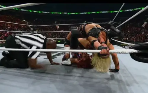 En la recta final, ambas estuvieron cerca de la victoria tras múltiples cuentas de dos, destacando un piledriver de la campeona y una poderosa ofensiva de Hayter que parecía inclinar la balanza a su favor.