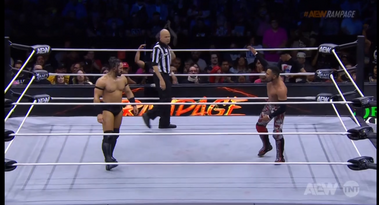 El toreo está servido, Rush llega al ring. Kassidy tiene ante él a un exponente mexicano de la lucha libre más recia. Se demora más Kassidy en entrar que Rush en derribarlo de unas patadas voladoras y luego rematarlo con las rodillas mientras Kassidy está sentado en el esquinero. Parece que lo va a cubrir con un pie, pero Rush decide alargar la agonía de Kassidy. Me refiero claro a que lo estrella con la barrera de protección no una ni dos veces, si no tres... Ah cuatro veces. Ahora le calienta la cabeza a rodillazos y puñetazos. Los dos a las afueras del ring. Ahora Rush le calienta la espalda a Kassidy con un cable, luego le rodea el cuello con el cable e intenta asxficiarlo, el referee lo detiene. Una vez más, cuando regresan al cuadrilátero, Rush se mofa de Kassidy, y le da el espacio para recuperarse. Pero no sirve de nada, porque literal Rush lo saca a patadas del ring, una vez afuera decide estrellarlo en las escalinatas y la lucha se transporta a la zona del público, pero el referee le dice que regrese al ring. Kassidy sí lo hace pero cae en las manos de Rush,un machetazo y pal suelo Kassidy. Más tarde Kassidy se recupera con su arsenal aéreo, remata a Rush con Swatom Bomb, inicia la cobertura, no llega a 3. Lo cual enoja a Rush, quien le calienta el pecho a machetazos, lo cual termina en ambos en el filo del ring pegándose machetazos... Kassidy domina con codazos, pero Rush lo tira fuera con un Belly 2 Belly Suplex. Pasa lo inevitable, Rush lo embiste, cubre, inicia la cuenta y el referee palmea 3 veces
