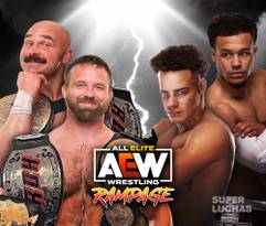 AEW RAMPAGE 25 DE NOVIEMBRE 2022 .— Los tricampeones mundiales FTR (Dax Harwood y Cash Wheeler) defenderán en este episodio de Rampage uno de sus títulos, el Campeonato Mundial de Parejas ROH. Sus retadores son el reformado equipo Top Flight, que conforman Dante Martin y Darius Martin. Aunque FTR esperan que sea una defensa rutinaria, los hermanos Martin podrían dar la sorpresa. La acción de AEW Rampage se emite desde la Wintrust Arena, en Chicago, Illinois.