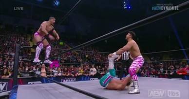 En la segunda lucha del show de esta semana de AEW Dynamite, vimos a The Acclaimed (Max Caster y Anthony Bowens), acompañados de Billy Gunn, vencer a dos luchadores locales cuyos nombres ni siquiera salieron en pantalla, pero que tuvieron algo de tiempo antes de que sonara la campana para burlarse del gesto del «tijereteo» de The Acclaimed.