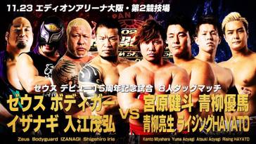 8. Zeus Debut 15th Anniversary Match: Zeus, The Bodyguard, Izanagi y Shigehiro Irie derrotaron a Kento Miyahara, Yuma Aoyagi, Atsuki Aoyagi y Rising HAYATO (22:23) con un Jackhammer de Zeus sobre HAYATO.