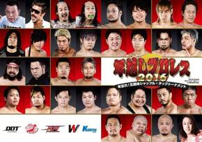 Pletórico lució el Korakuen Hall de Tokio para el magno evento «Toshikoshi Pro Wrestling 2016» el tradicional torneo de parejas de fin de año que por primera ocasión tuvo la participación de 5 empresas: AJPW, BJW, DDT, Wrestle-1 y Kaientai Dojo.