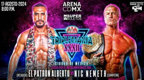 En Triplemanía XXXII, versión Tijuana, las cosas no quedaron nada bien para Alberto el Patrón. Estaba listo para festejar el Megacampeonato, pero esto no pudo ser y Nic Nemeth fue quien se quedó con el título.