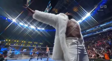 La lucha comenzó con una distracción temprana. Trick Williams apareció y se subió a la mesa de comentaristas, desviando la atención de Sami Zayn. Black aprovechó al instante, conectando una patada en el rostro y llevando a Zayn al esquinero para castigarlo con derechazos y patadas. Sami logró revertir la situación y respondió con golpes, pero antes de que la lucha pudiera tomar ritmo, ocurrió un incidente inesperado: el humo del entrance de Black se activó por error, llenando el ring y retrasando momentáneamente la acción.