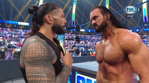 Por otro lado, el encontronazo que Drew McIntyre tuvo anoche con Roman Reigns es una clara insinuación de que el escocés recuperará el Campeonato WWE para enfrentar al samoano en el próximo PPV. Esto no sería ninguna sorpresa pues desde que «La Víbora» lo venció para coronarse estaba bastante claro que más pronto que tarde conseguiría de nuevo el título. Porque Randy Orton vs. Roman Reigns no tiene sentido debido a que ambos son rudos. En cambio, Roman Reigns vs. Drew McIntyre será con toda seguridad la lucha estelar del evento previo pago.