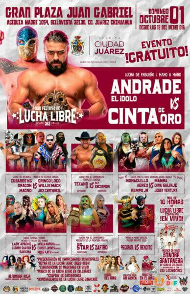 El evento estará encabezado por un emocionante enfrentamiento mano a mano entre Andrade El Ídolo y Cinta de Oro. Además, se llevará a cabo un combate por el Campeonato Completo Alborde entre Rey Escorpión y Texano Jr.