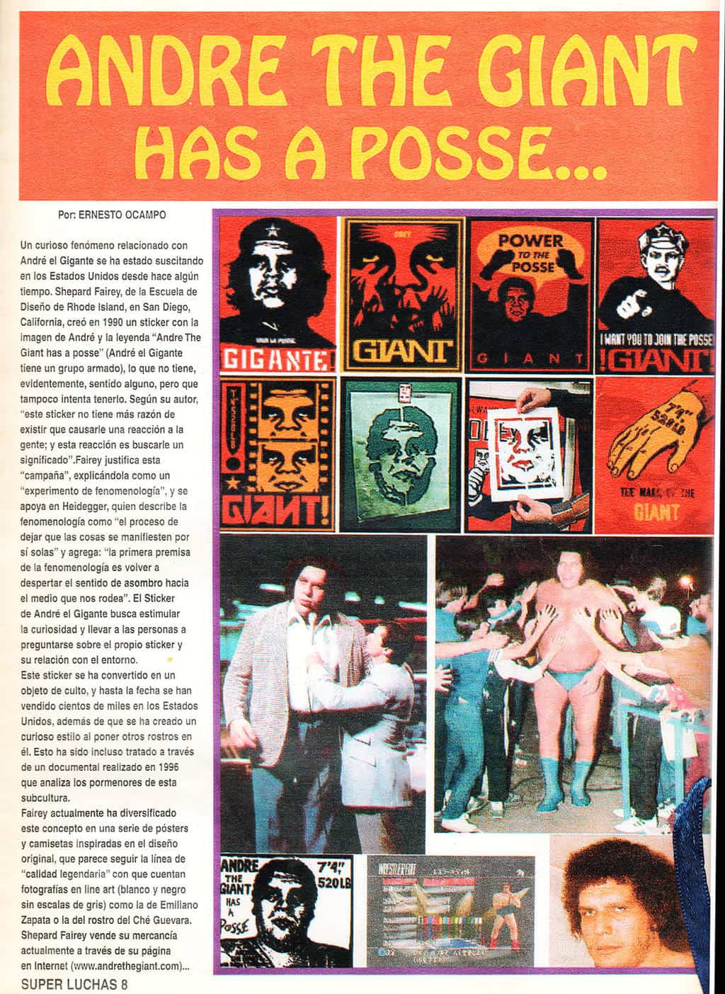 Un artículo sobre el arte de Fairey inspirado en André, fue publicado en SÚPER LUCHAS en 1999 (click para agrandar):