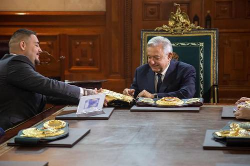 Pues bien, estuvo de visita con el presidente Andrés Manuel López Obrador e intercambiaron obsequios. Andy le entregó una copia de los guantes dorados que usó contra Joshua y a su vez, el presidente le dio una edición especial de un billete de 500 pesos con la imagen de Benito Juárez.