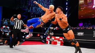 en WWE, debido a que Rhodes fue fundamental en la llegada de Ogogo a AEW, y de hecho, fue su primera y única gran rivalidad. Ogogo y Rhodes lucharon en Double or Nothing 2021, y Rhodes se llevó la victoria. Estas fueron las palabras que le dedicó Ogogo a Rhodes:«Vi a Cody en el ring con The Rock el otro día, lo vi en YouTube, con más de 100 millones de vistas o algo así, y pensé… [Ogogo hace una pausa, sacude la cabeza y aprieta los labios].