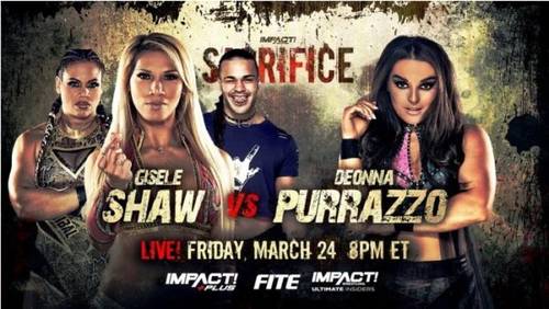 Además, en las últimas horas Impact ha anunciado una suerte de previa de Multiverse United, porque Deonna Purrazzo y Gisele Shaw disputarán mano a mano durante Sacrifice. Revancha de No Surrender, donde Shaw salió triunfante (con la ayuda de Jai Vidal y Savannah Evans).