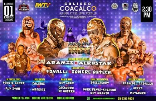 Con un evento plagado de combates mano a mano, este 1 de enero la Arena Coliseo de Coacalco recibirá el 2024, buscando comenzar con duelos interesantes en año nuevo.