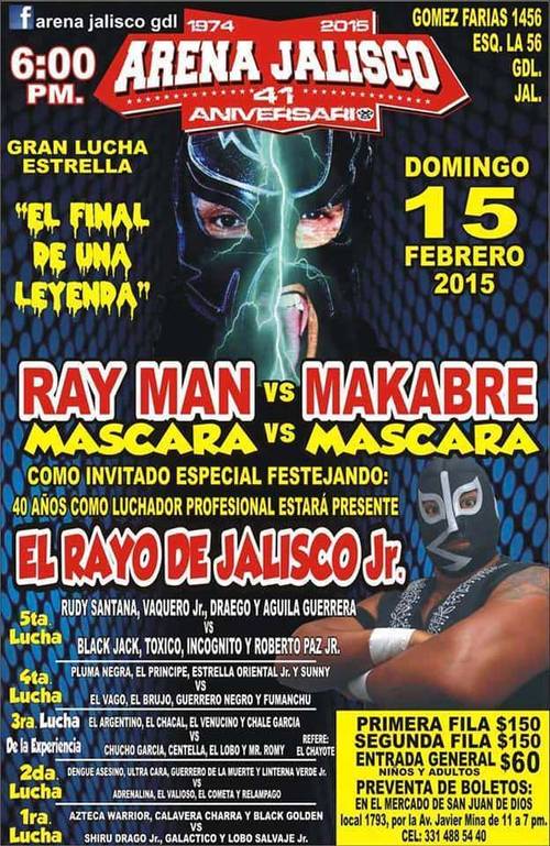 Arena Jalisco: Resultados 15/02/2015 - Cae la máscara de Makabre