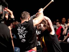 «No lo recuerdo. Tan fácil como eso. Soy honesto contigo. La idea concreta no sé cómo surgió pero sé que Mick Foley tuvo algo que ver con ella. Recuerdo que en uno de nuestros primeros encuentros me dejó que le escupiera en la cara, igual que Harley Race… recuerdo que me tenía que lanzar un puñetazo y yo me iba a apartar. No me importa la edad que tuviera pero yo no me iba a dejar noquear por él en la televisión en directo para todo el país. Pensando a la manera antigua, ‘Old School’, el respeto por todos ellos estaba ahí por el amor que sentían por mi padre. Sabían que yo era su hijo y me ayudaban haciendo todo tipo de cosas por mi.